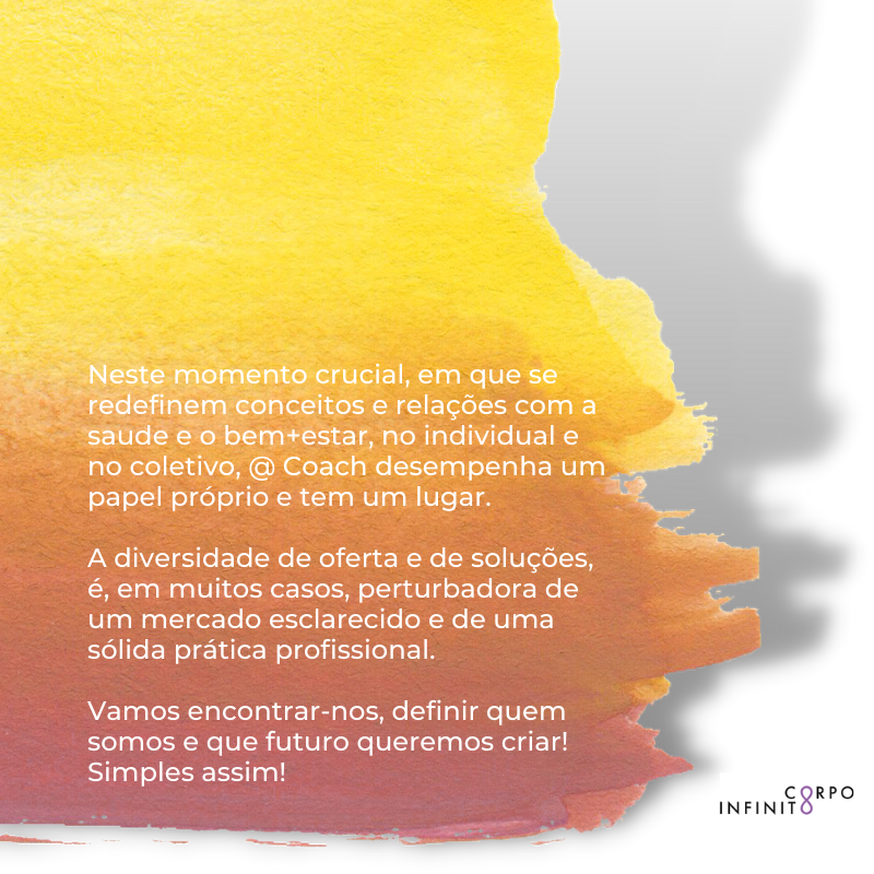 Neste momento crucial, em que se redefinem conceitos e relações com a saude e o bem+estar, no individual e no coletivo, @ Coach desempenha um papel próprio e tem um lugar.