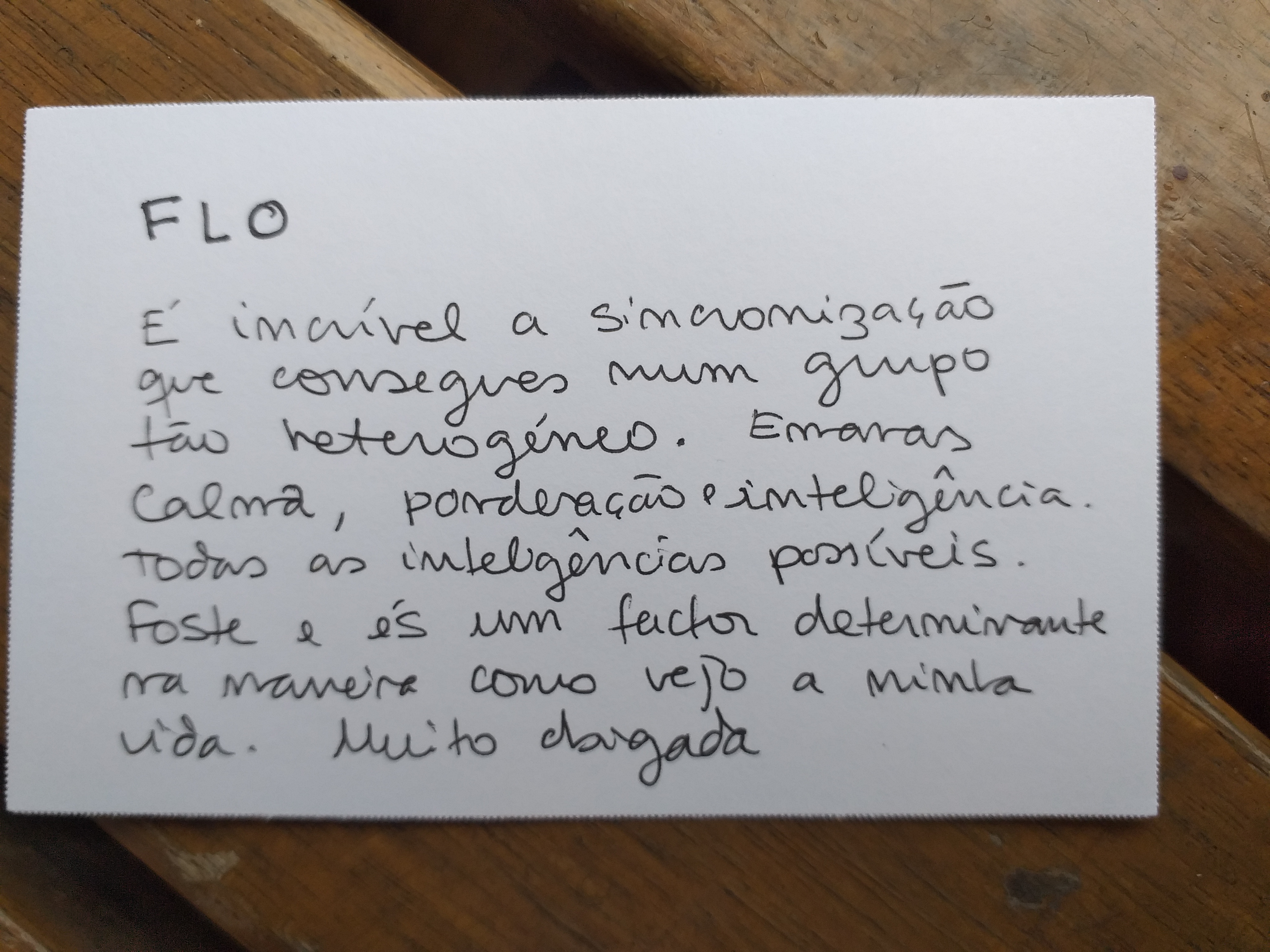 “Tem sido uma viagem incrível consigo Floriane! Obrigada por estar ao meu lado, é muito bom sentir que não preciso de fazer tudo sozinha mesmo se sou eu que faço tudo para mim mesma” 😊 I. Pereira, Professora